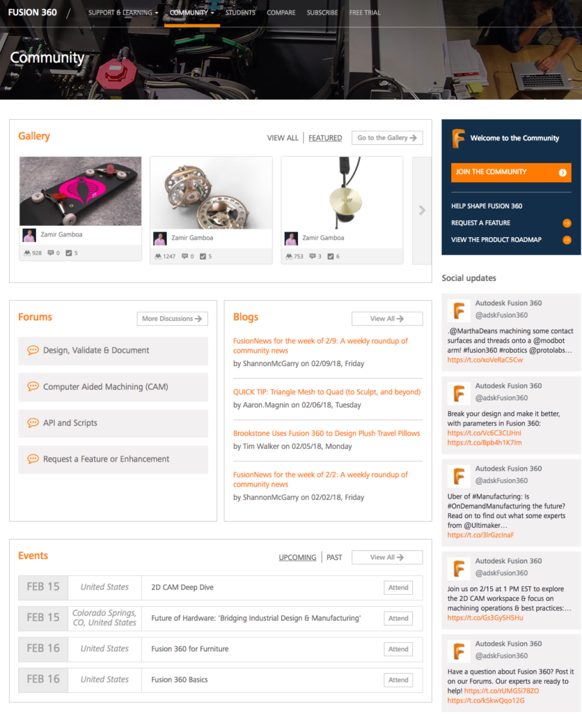 Most Autodesk communities are support communities. These are all mostly in the same format as shown below: