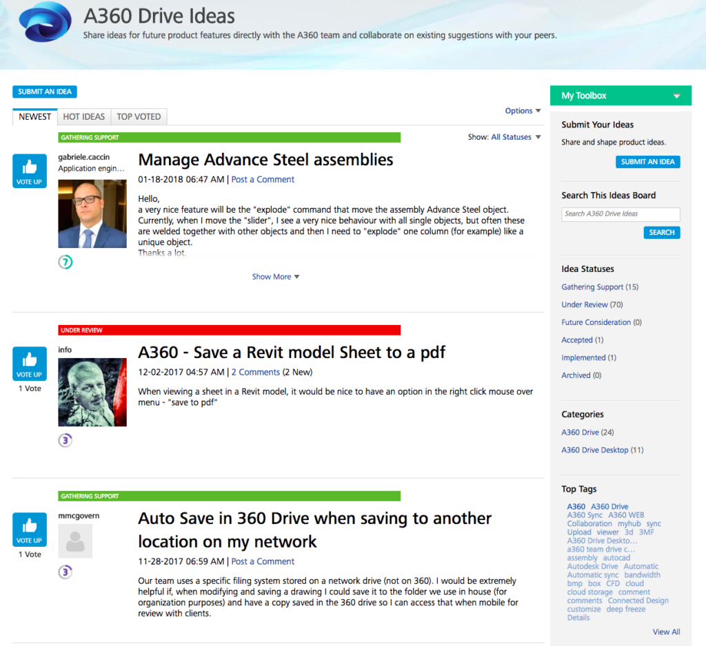 The Autodesk community has an ideation area where members can suggest ideas which might be implemented in the product.