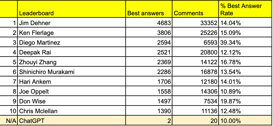 Thus it is possible for ChatGPT to provide better answers than top members.