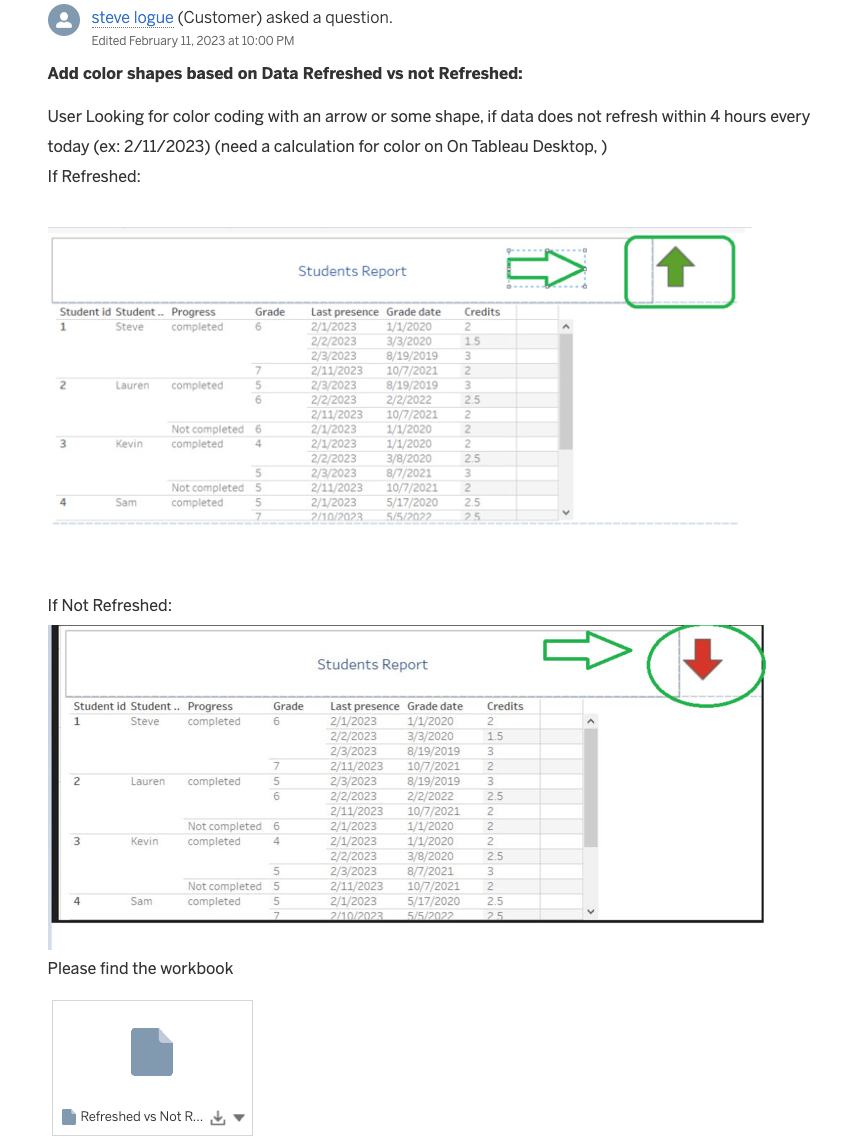 The question above is looking to create a shape based upon whether the table has been refreshed within the past four hours or not.
