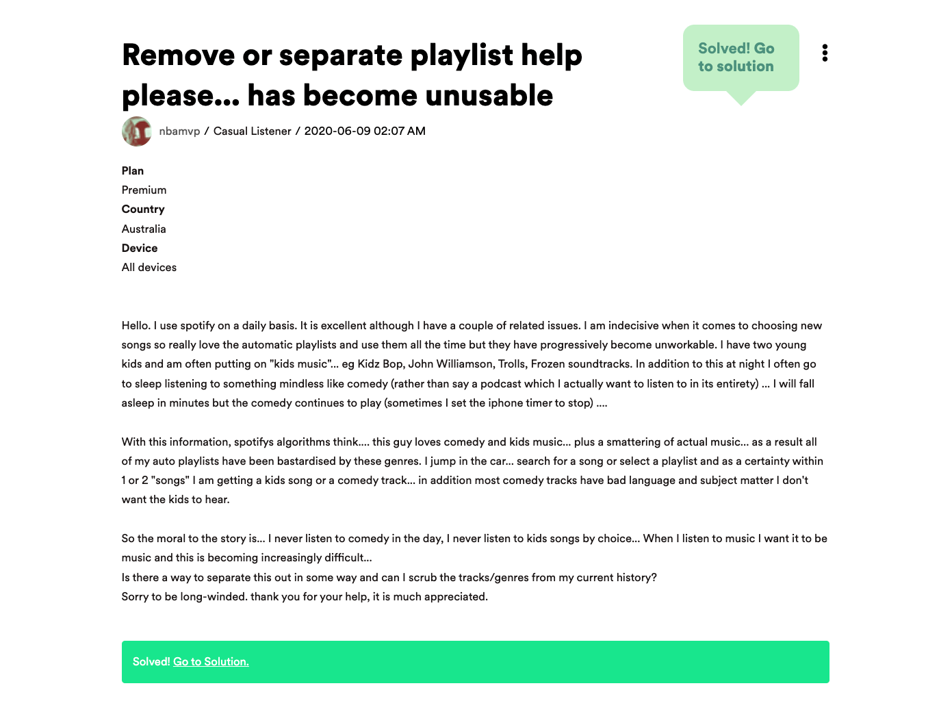 The ChatGPT answer suggests removing previously listened to songs from playlists – which seems like a lot more work. It also wouldn’t immediately affect future playlists as much as past playlists. However, it does include specific steps to filter explicit content from kids.