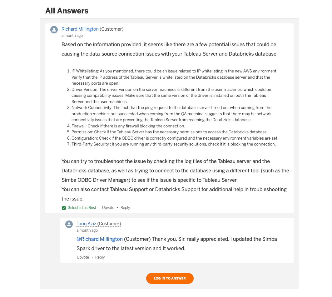 The community answer presumes the person asking the question has a certain level of expertise, the ChatGPT answer doesn’t. The former might be better for a member more familiar with Tableau, the latter might be better for someone that isn’t.