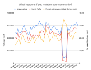 We can range multiple datasets to show the impact the community upon whichever metric matters to you (i.e. community behavior on sales, retention or NPS etc…). |